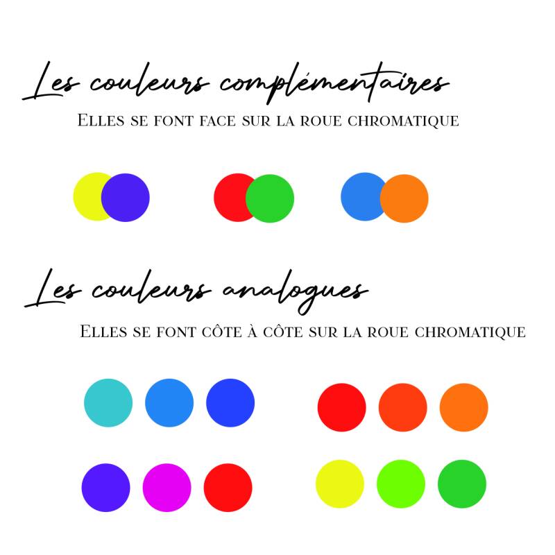 - Enfin, les couleurs analogues : voisines sur la roue chromatique, elles se ressemblent beaucoup et associée elles donnent une harmonie agréable.