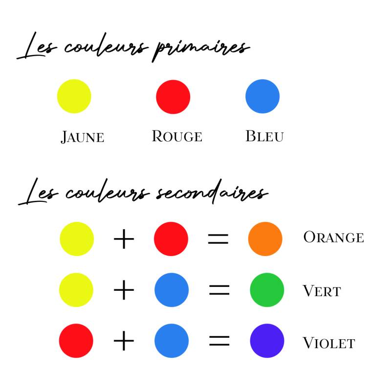 - Les couleurs primaires (rouge, bleu, jaune // en réalité cyan, magenta et jaune primaire) : Nos magiciennes ! Ce sont les bases à partir desquelles on peut créer TOUTES les autres couleurs.
