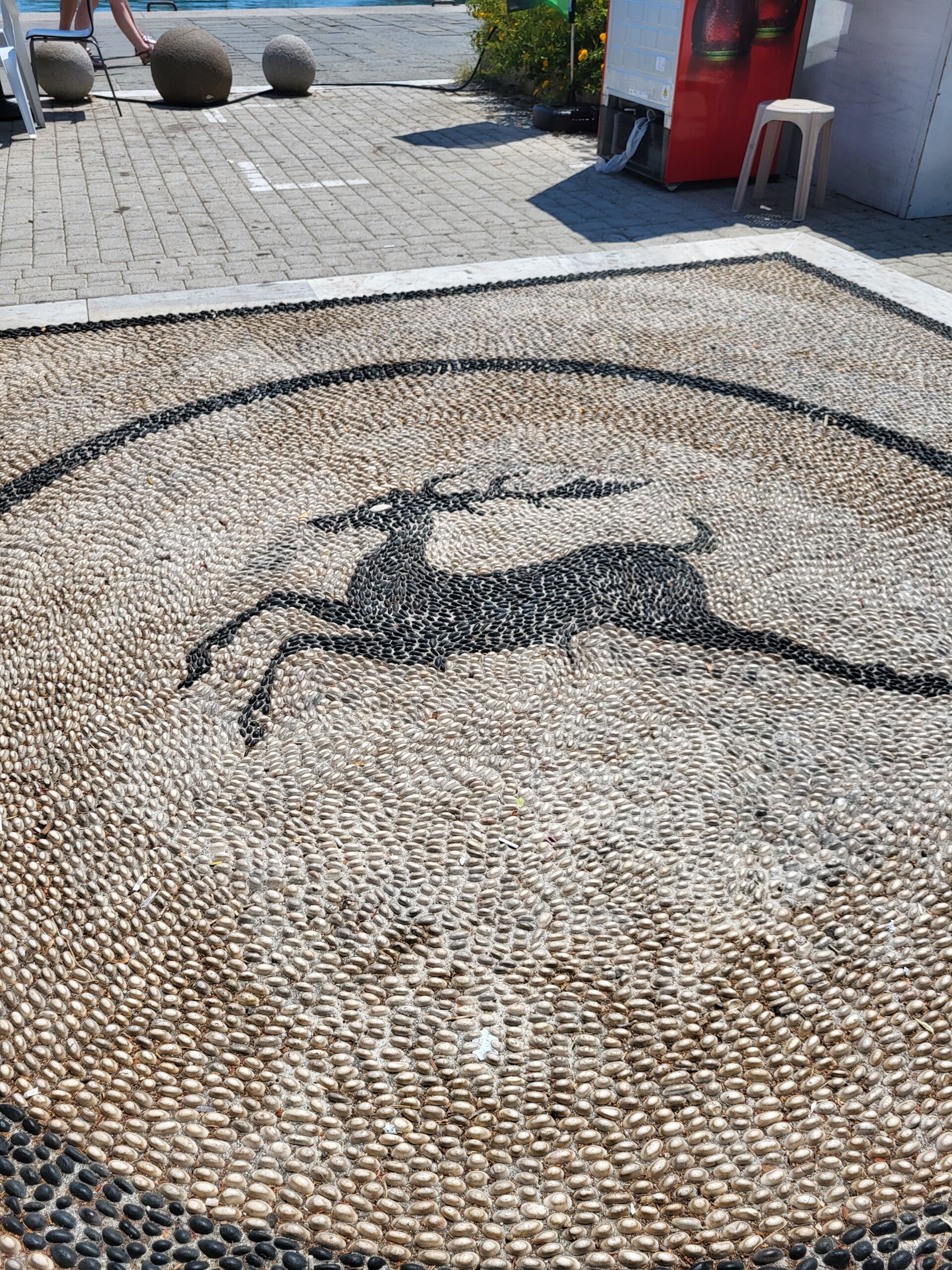 Parfois, une brise marine glisse dans les ruelles, mêlée à l’odeur des fleurs et des pierres chaudes. À l’entrée du port, les deux cerfs de bronze regardent l’horizon : leur présence tranquille rappelle la légende du colosse disparu, fantôme majestueux d’un passé mythique.