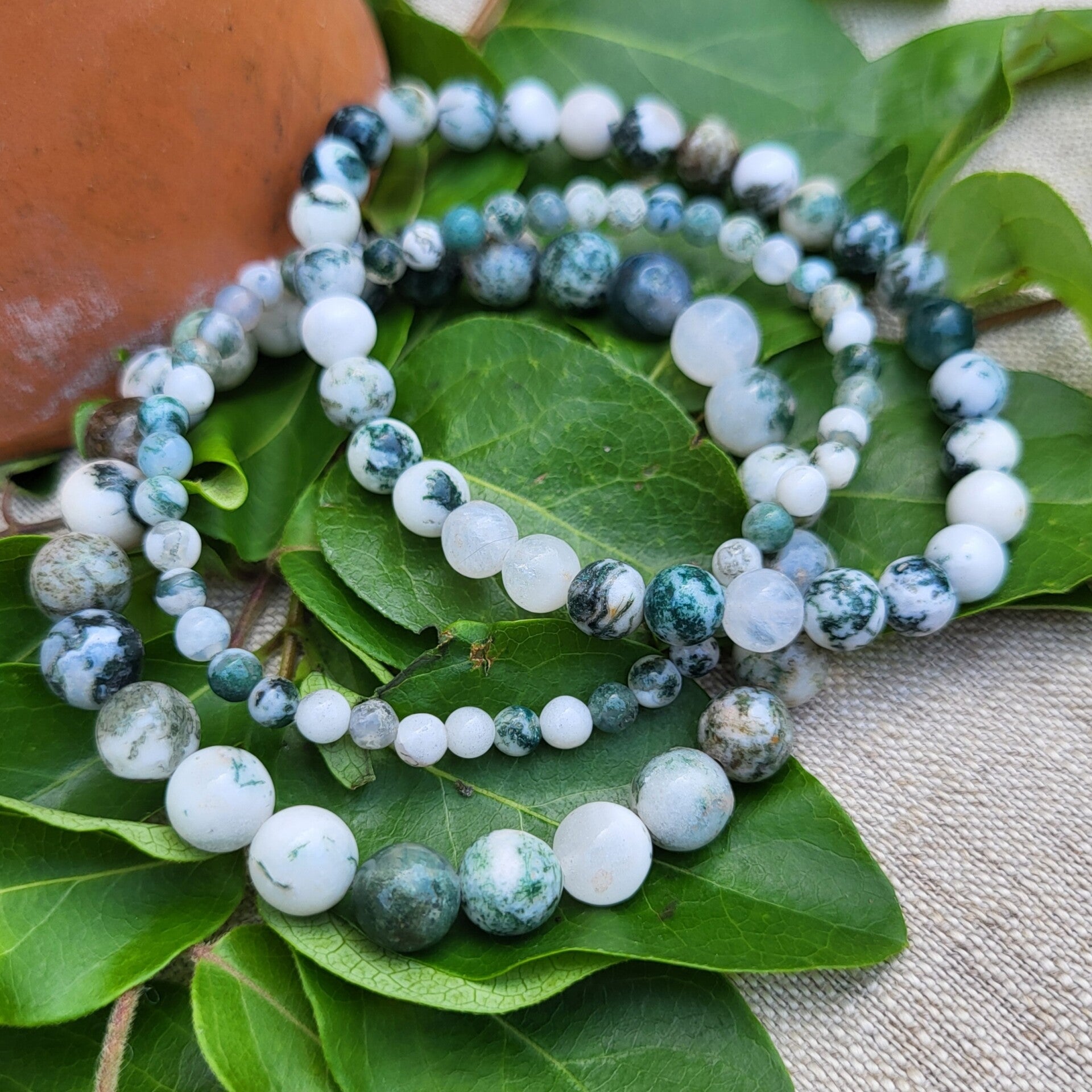 L’Agate Arbre est traditionnellement associée à la croissance, au lien avec la nature et à l’harmonie intérieure.