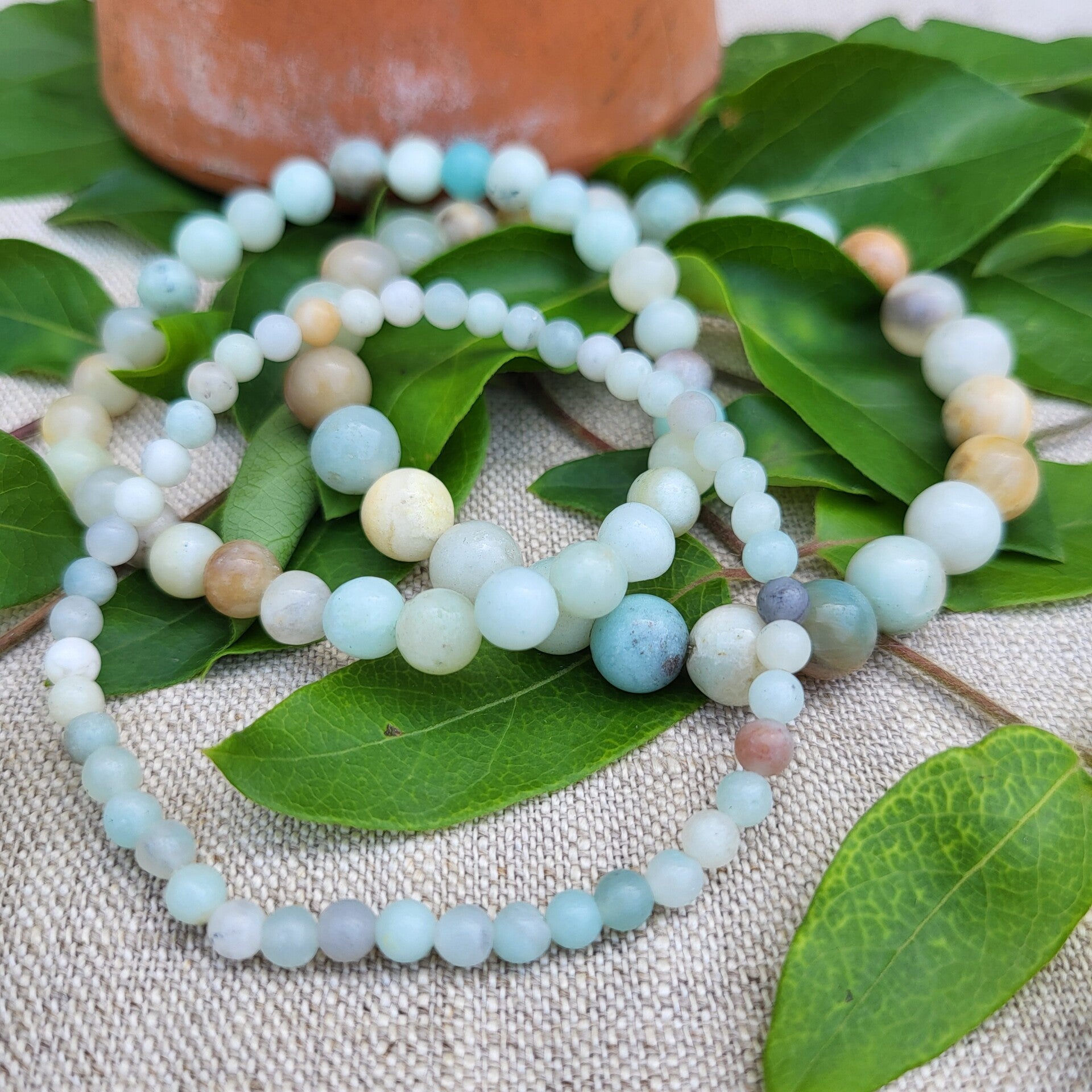 L’Amazonite séduit par ses tons vert-bleu apaisants, parfois traversés de fines veines blanches, évoquant les eaux tropicales.