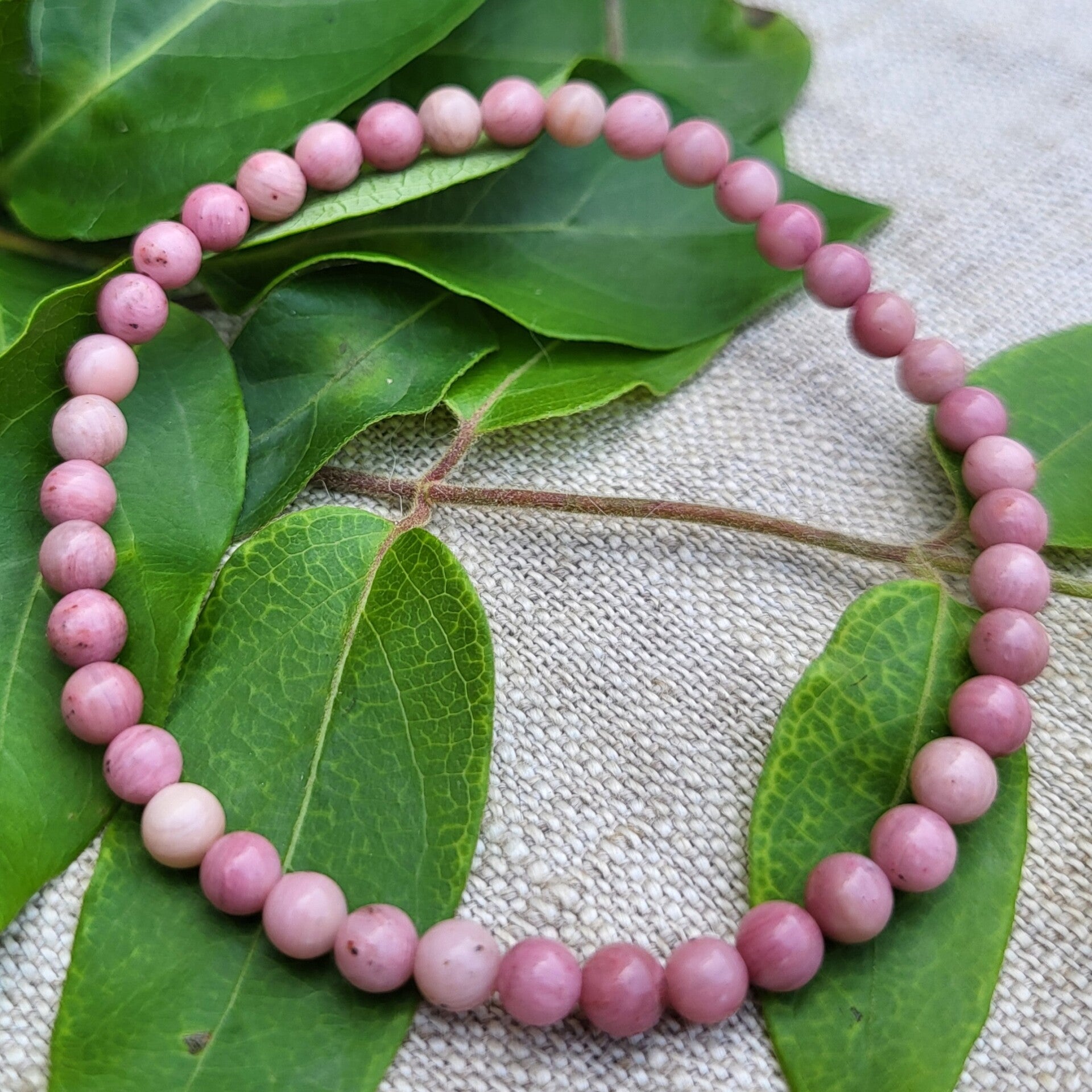 La Rhodonite, avec son rose tendre ou soutenu parcouru de veines sombres, allie douceur et caractère.