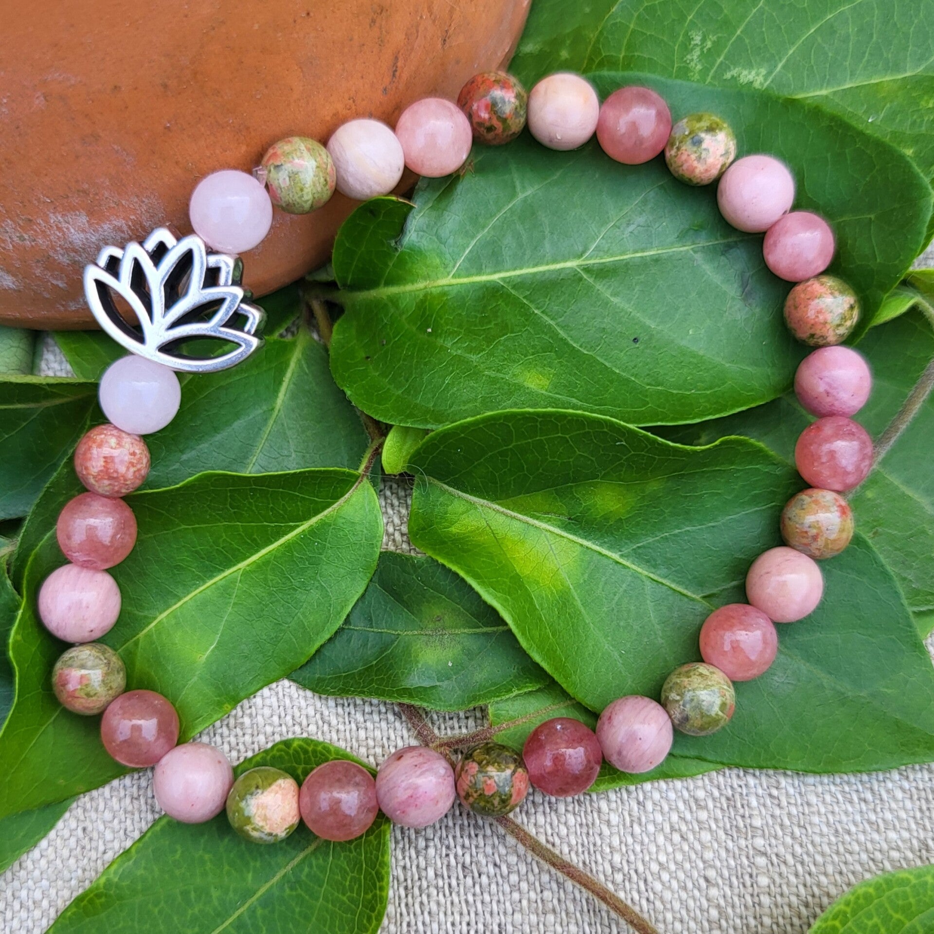 "Lakshmi" - Bracelet Quartz rose, Rhodonite, Unakite