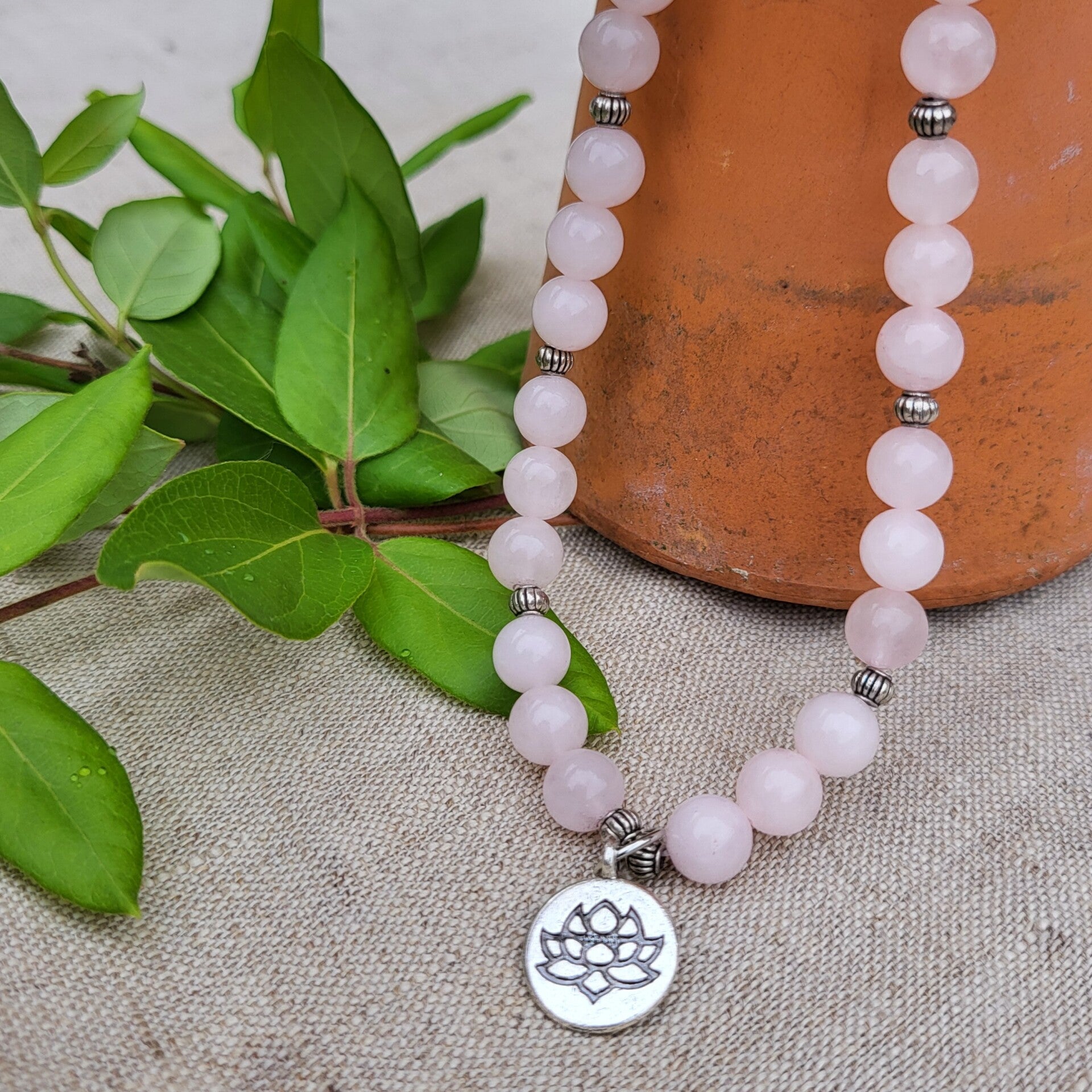 Un bijou tendre et apaisant, inspiré de la tradition méditative, où chaque perle est une invitation à ralentir et à se recentrer. Associé à la douceur et à l’harmonie émotionnelle, le quartz rose est considéré comme la pierre de l’amour universel, nourrissant des pensées bienveillantes envers soi et envers les autres.