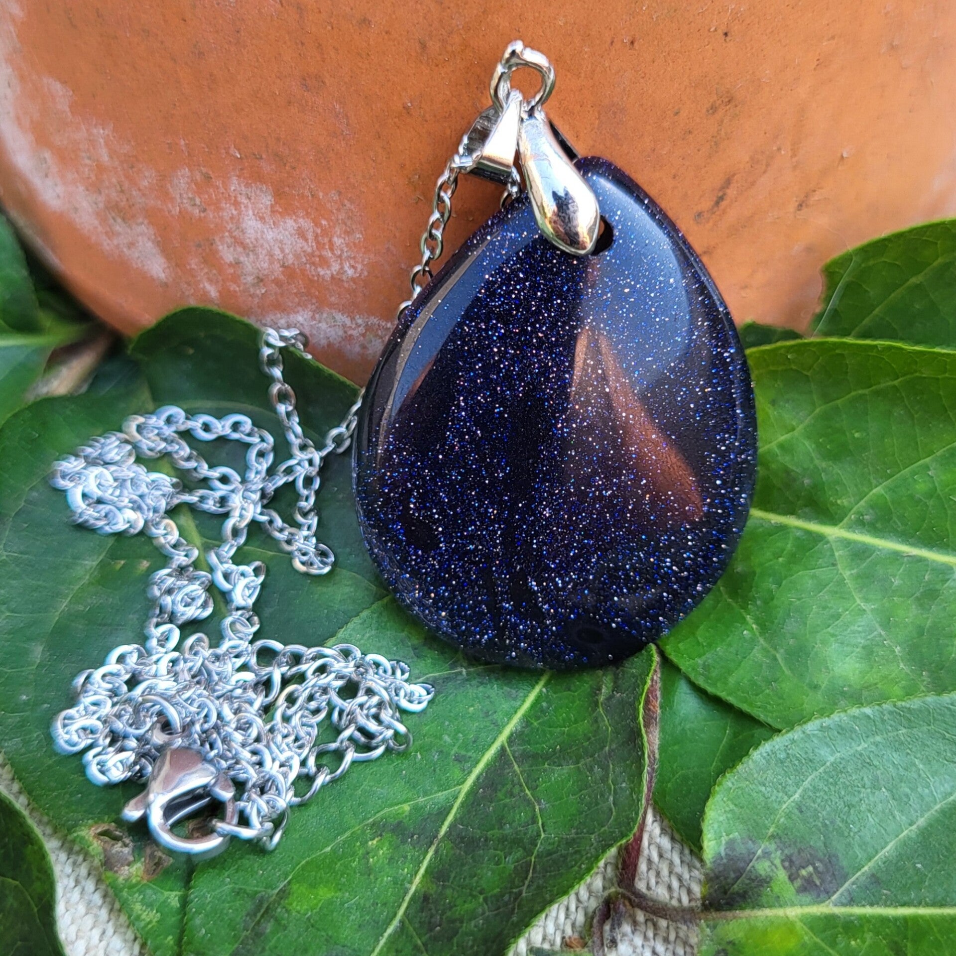 Horizon Étoilé – Pendentif Pierre de Sable Bleu sur chaîne