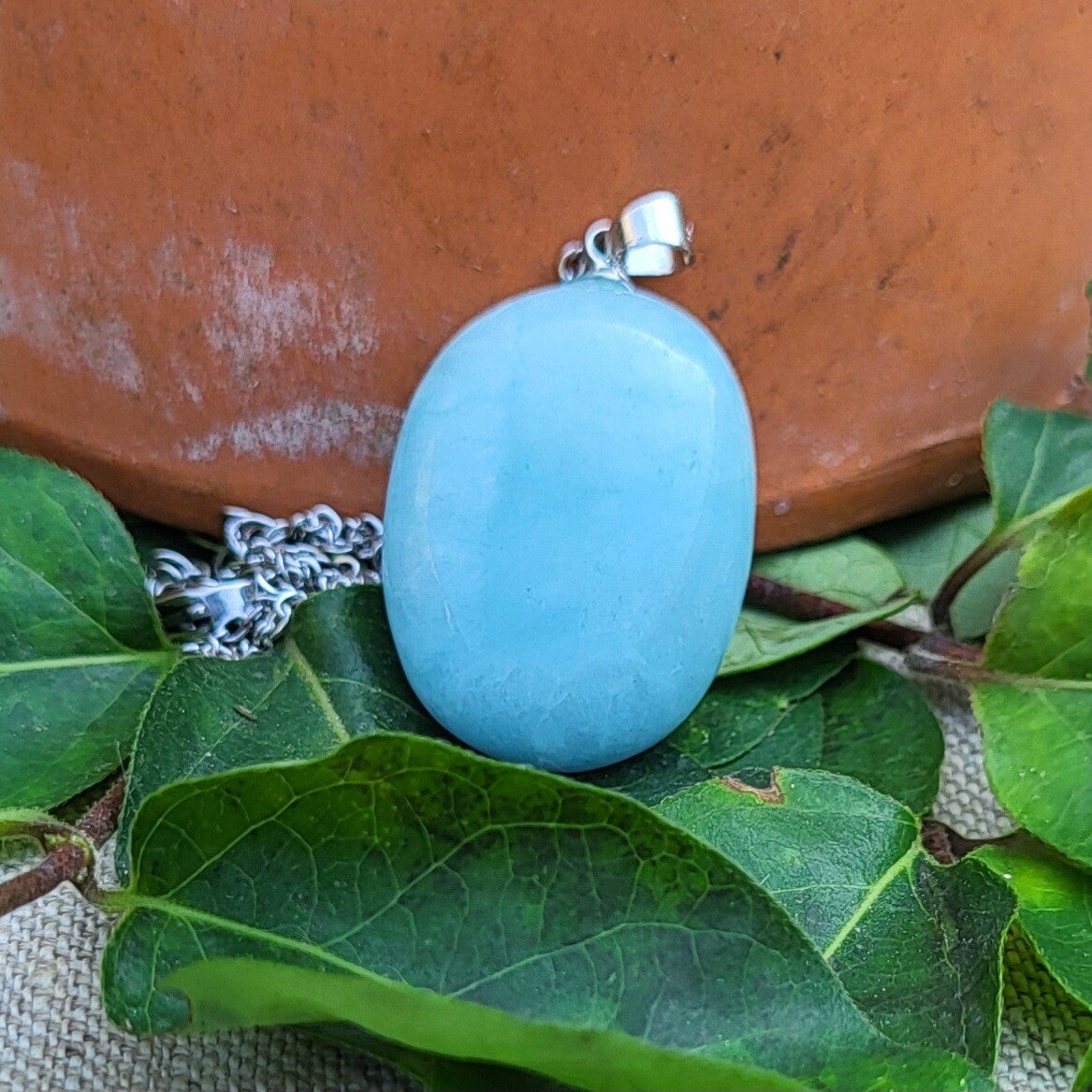 Évoquant les vagues et la poésie des couleurs marines, ce pendentif en pierre roulée d'Aigue-Marine naturelle bleu doux, apporte luminosité et délicatesse à vos tenues.
