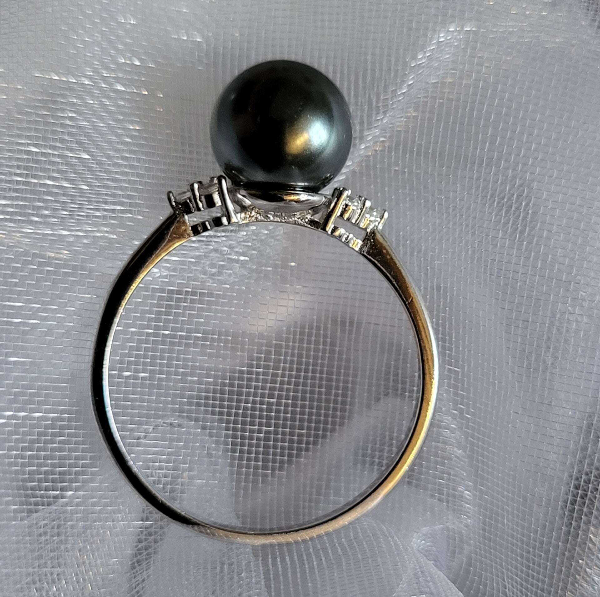 "Vaiana" - Jolie bague avec Perle d'eau douce grise et brillants